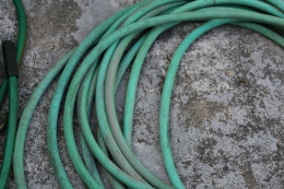 Hoses in good condition can be reused and donated, If you have no other option put hoses in the garbage.